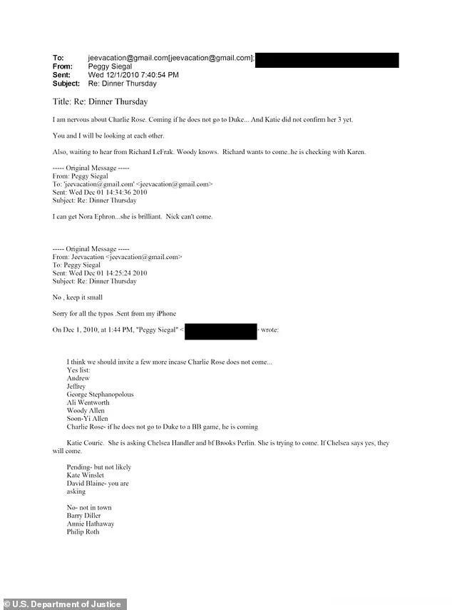 2010年,她收效攒了一个局,让爱泼斯坦与知己安德鲁王子,以及伍迪·艾伦、宋宜、乔治·斯特凡诺普洛斯等闻东说念主同桌共进晚餐。